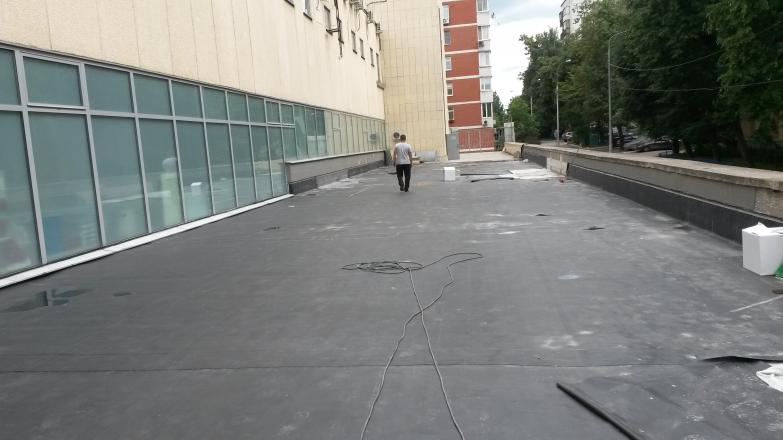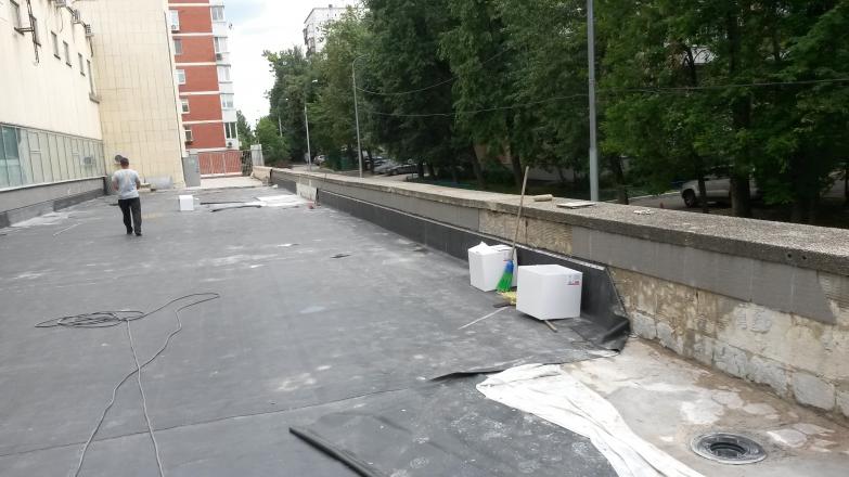Устройство пешеходных зон на кровле для обслуживания технологического оборудования.